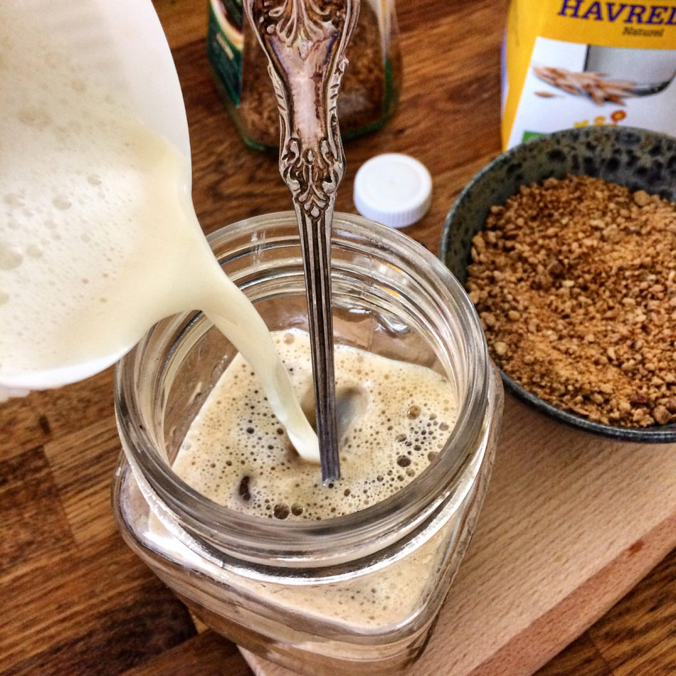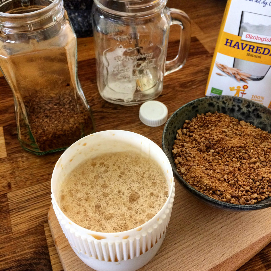 1 1/2 dl. køleskabskoldt havredrik (eller anden plantedrik)