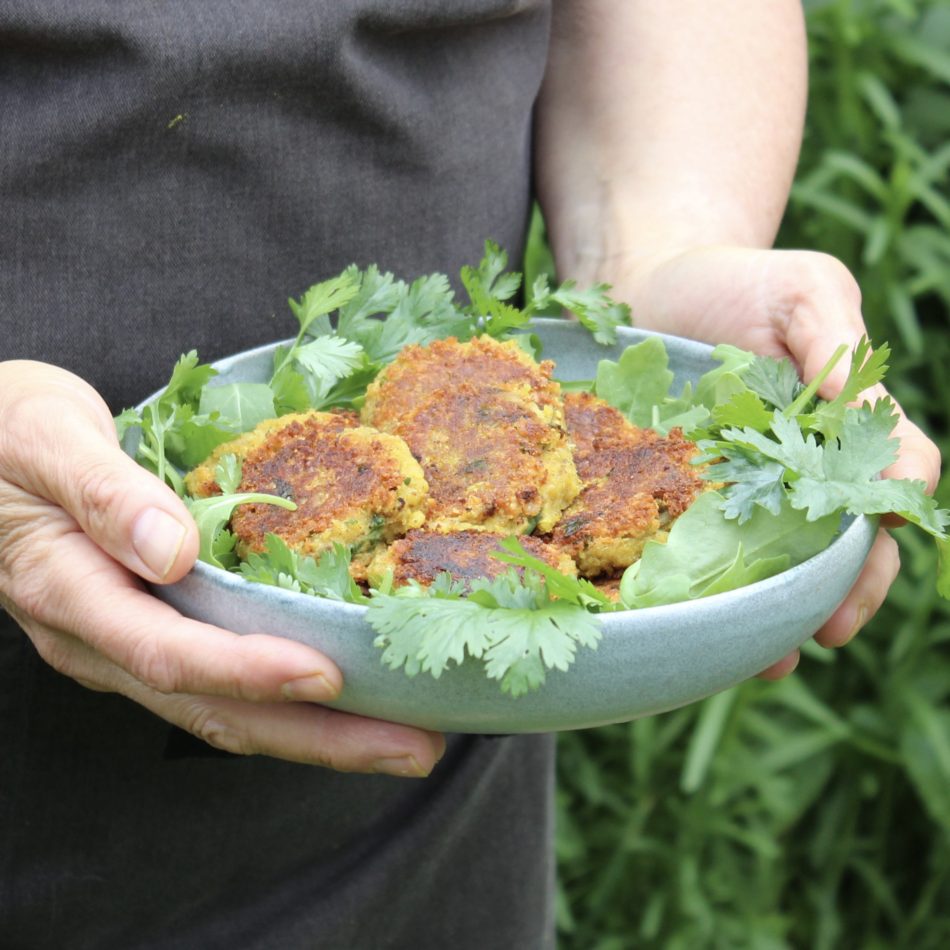 Frikadeller bliver jeg aldrig træt af. Som barn var det min mors frikadeller jeg guffede i mig. De var en fast del af den ugentlige madplan. De der små stegte runde nogen, der var lidt sprøde udenpå og bløde indeni. Dengang var de lavet af kød. Disse her er lavet af bønner og grønsager. Det bliver de absolut ikke ringere af. Måske vil jeg få på puklen, fordi jeg kalder dem frikadeller. Pyt med det. I mit univers er frikadeller bare sådan nogen små runde stegte nogen, der er lavet af en slags fars. Indholdet kan varieres i en uendelighed. Jeg har lavet rigtig mange forskellige slags frikadeller gennem tiden. Her er en af slagsen.